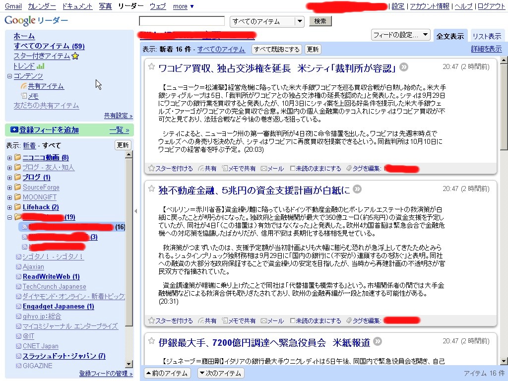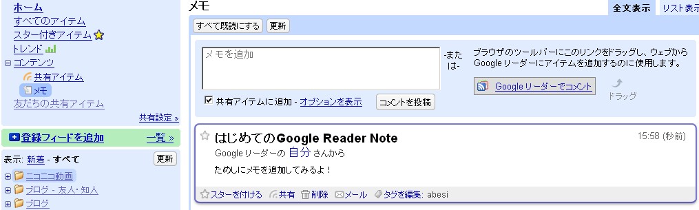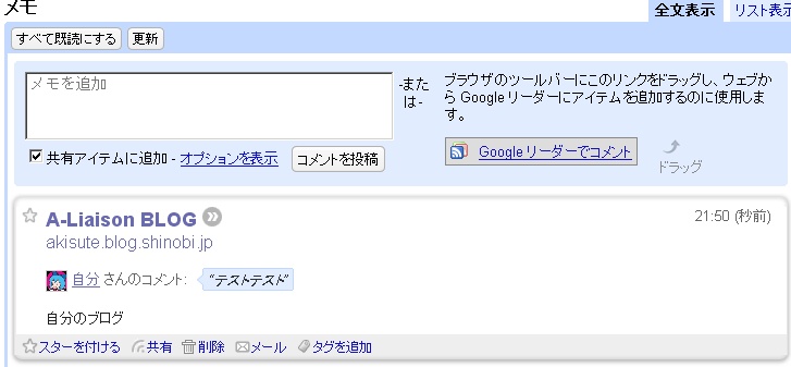 さて、これで全部できました!早速Googleリーダーに読ませてみましょう。