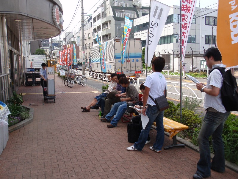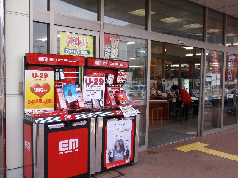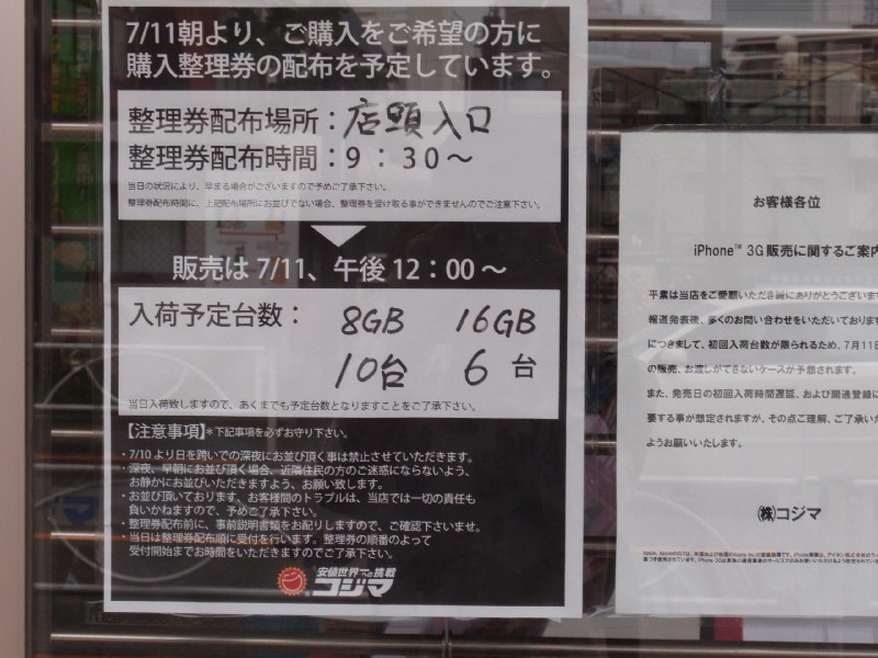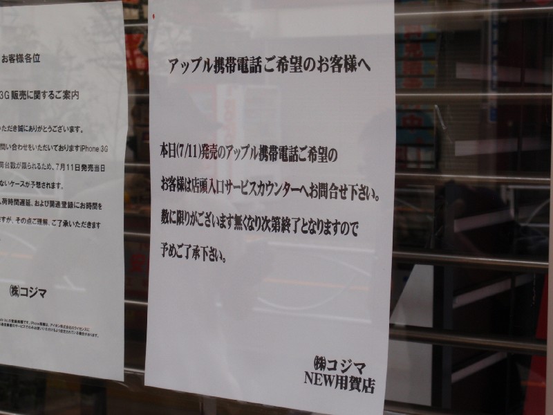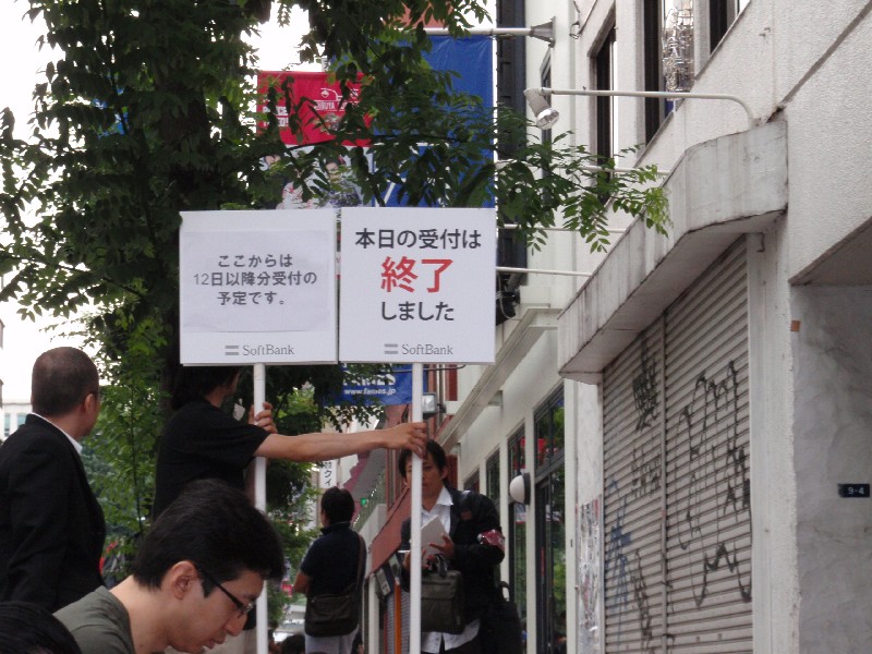 しかも店頭はこんな雰囲気。これじゃiPhoneじゃなくてイーモバイルの製品を買うために並んでいるみたいなんですけど・・・