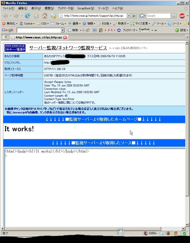 こんなすばらしいサービスがありましたので、さっそく外部から接続できているか試してみます。