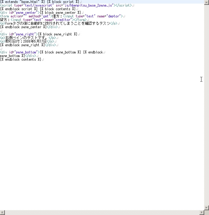 問題はDjango独自のタグ・・・{{}}ですとか{##}ですとか{%%}ですとか・・・が入るので、普通のhtmlフォーマッターは使えないということです。