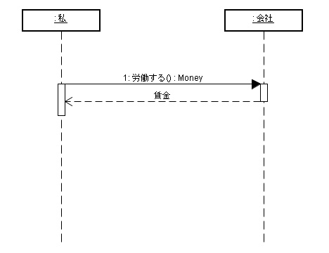 相互作用図なら、私から会社に「労働する」というメッセージを送り、