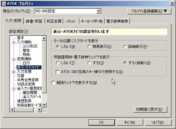 それから、どうやらOfficeの特定のバージョン(XPらしいです)でATOKを使用すると、強制的にIMEに切り替わってしまうという問題があるらしいのですが、その回避方法も教えていただきました。