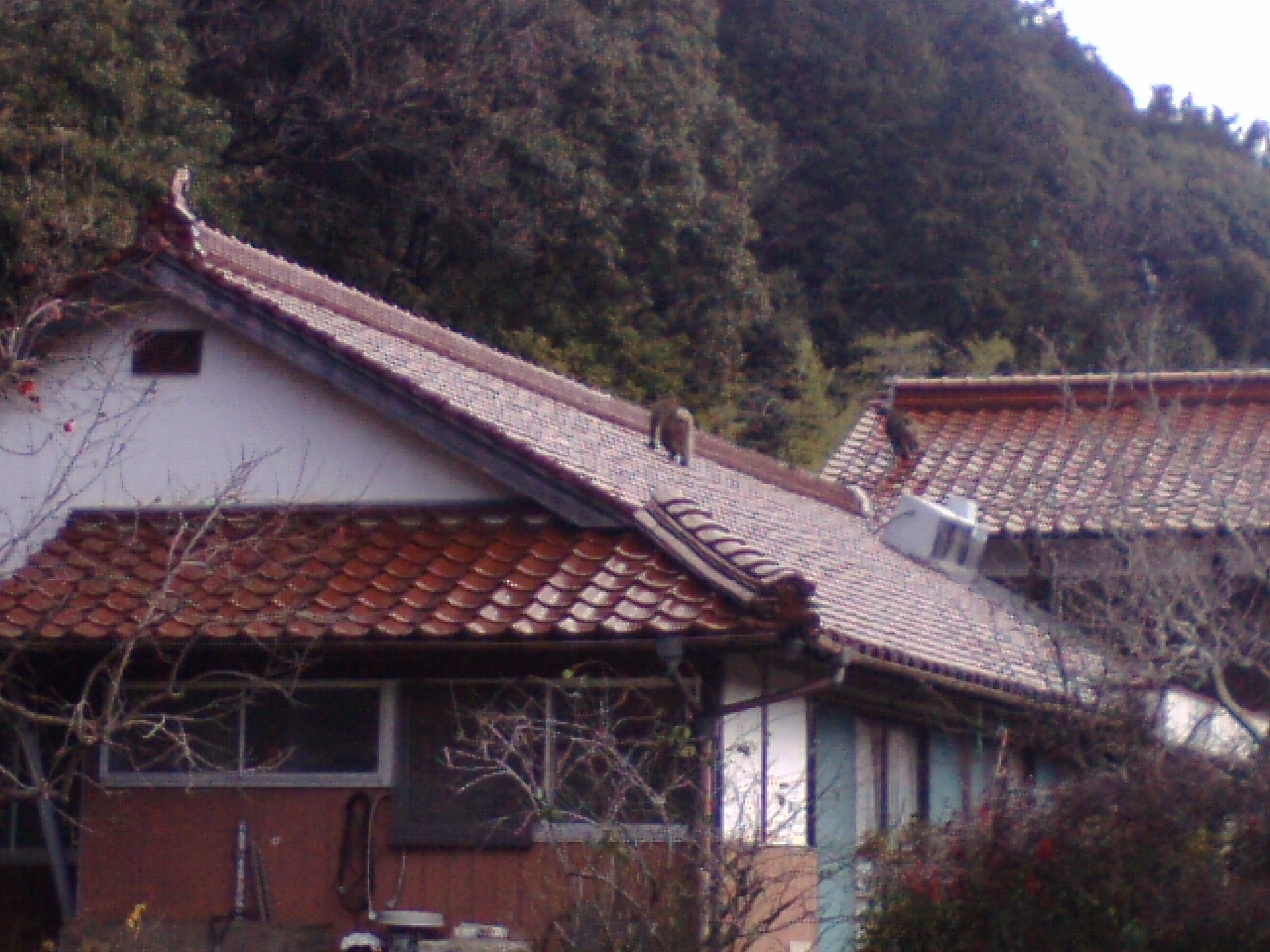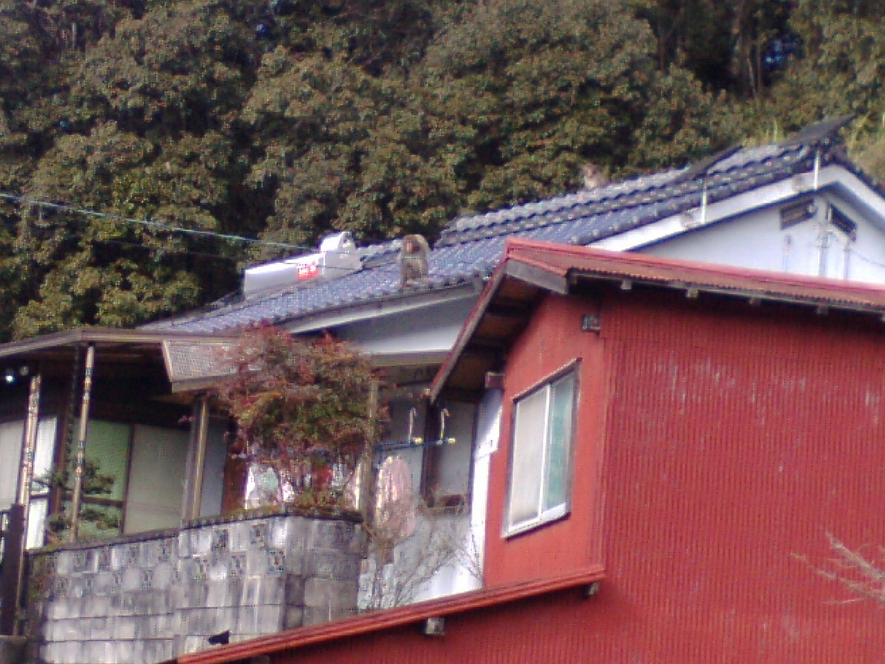 写真には映ってませんが、この家の裏の山のそこらじゅうからサルの叫び声と木が揺れる音が・・・