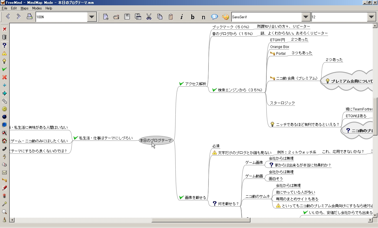 ふと思い立ってマインドマップを書いてみたら、アイディアが出るわ出るわ。