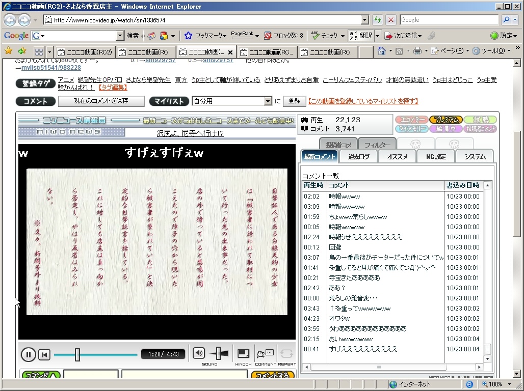 私のBlogをみて(万が一にでも)ニコ動を見てみたいと思われた方がいたとしても、