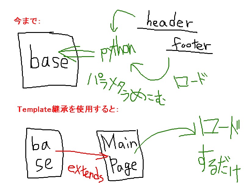 さて、テンプレートの継承機能を用いるところまでは、Djangoのリファレンスサイトを見ればあっさり終わったのですが、新たな問題が出現してきました。